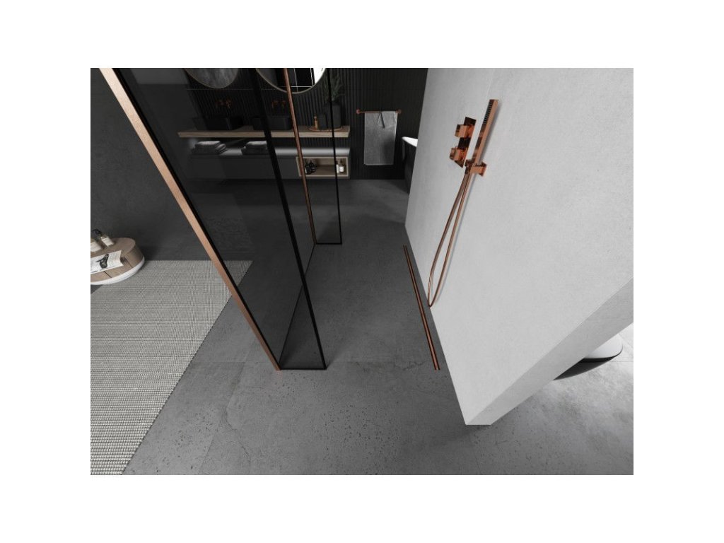 Mexen Kioto voľne stojaca sprchová stena 90 x 30 x 30 cm, čierny dizajn, brúsená meď - 800-090-030-222-65-70-030