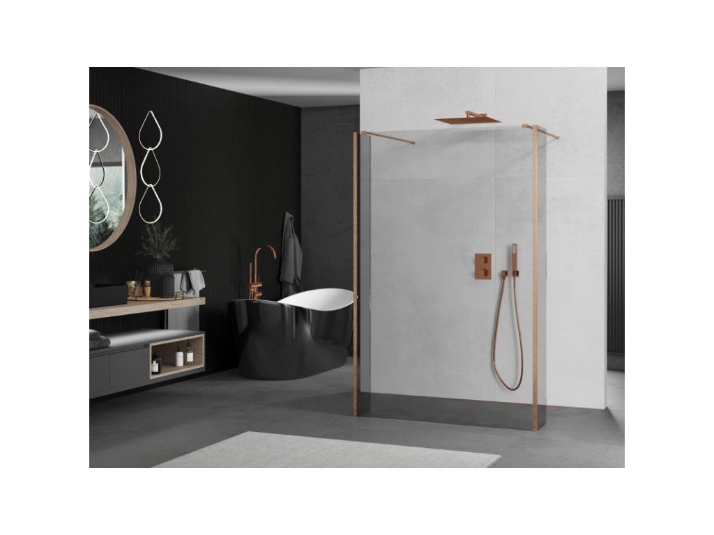 Mexen Kioto voľne stojaca sprchová stena 90 x 30 x 30 cm, transparentná, brúsená meď - 800-090-030-222-65-00-030