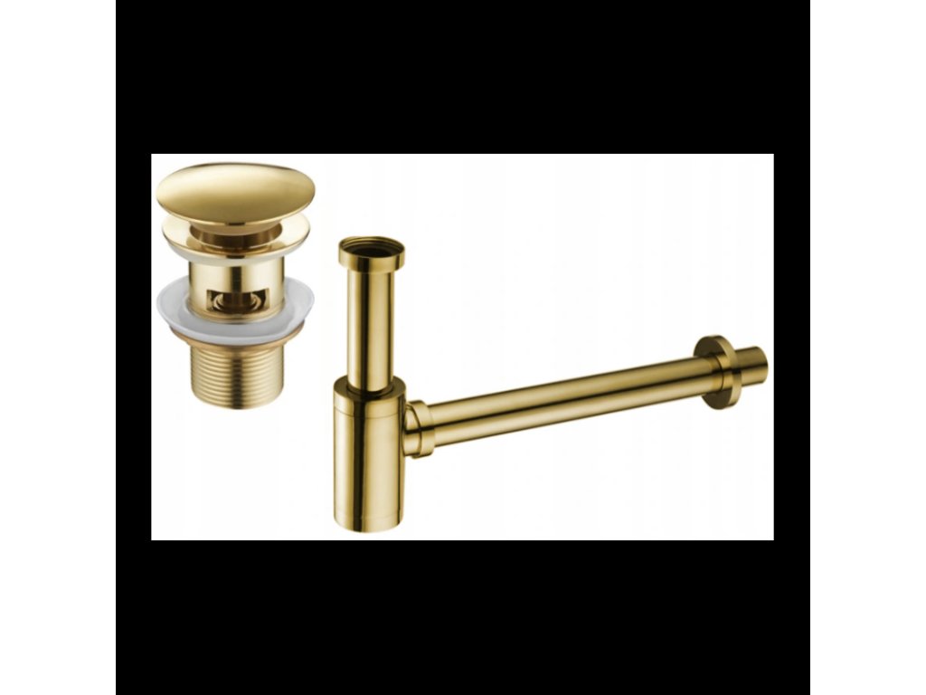 Mexen kruhový umývadlový sifón s klikacou zátkou, s prepadom, zlatý - 7992050-50