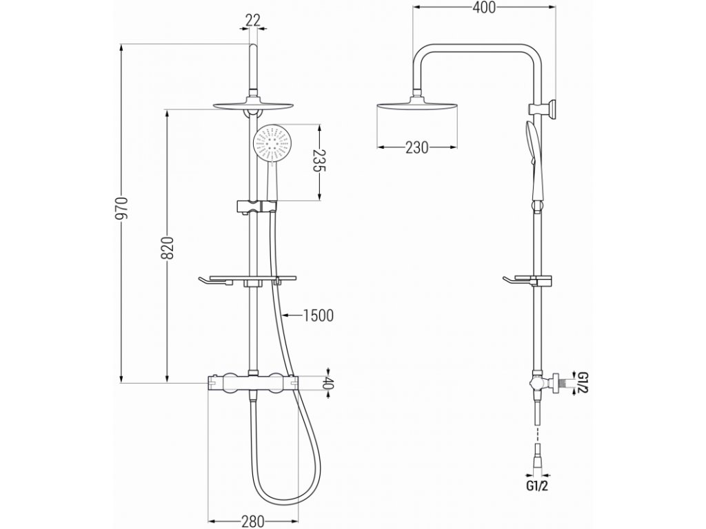 Mexen KT67 nástenná sprchová súprava s dažďovou sprchou, termostatická batéria, chróm/biela - 771506793-00