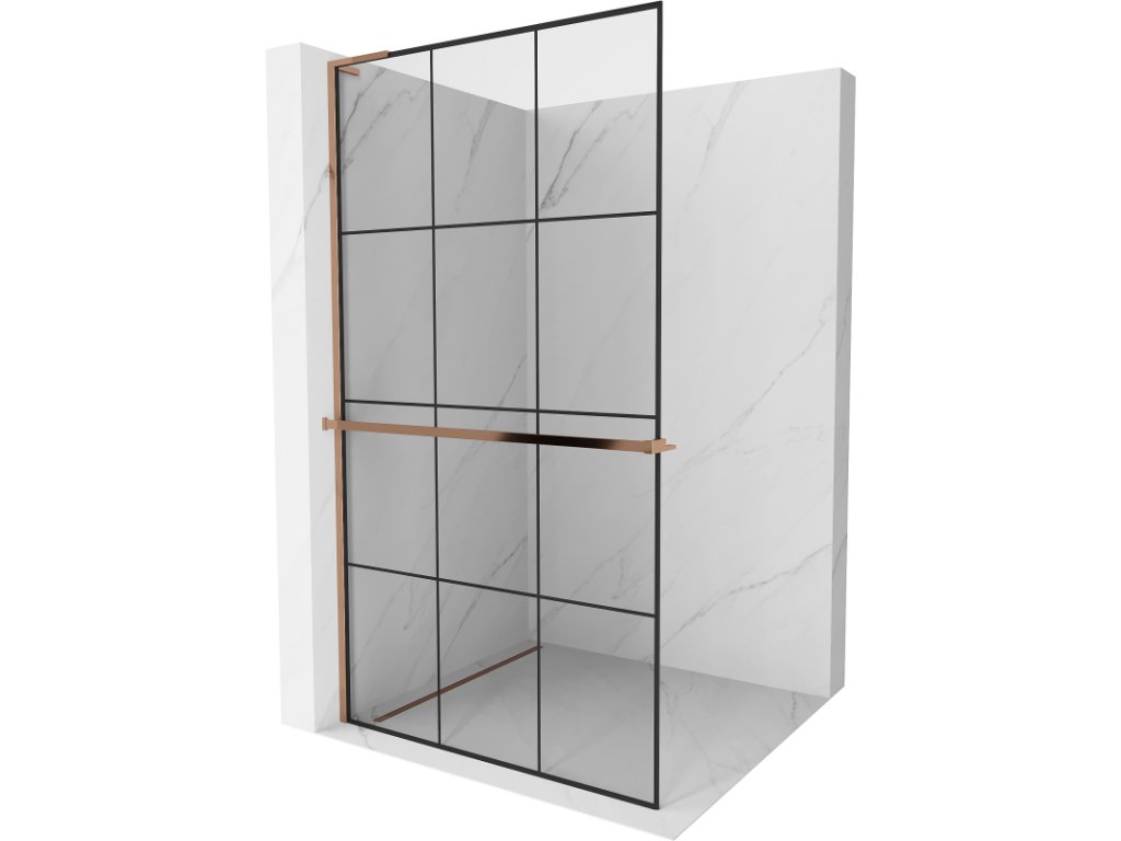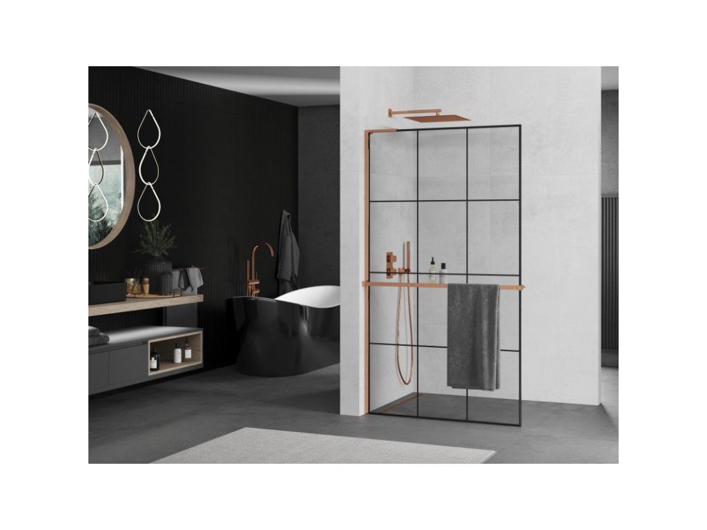 Mexen Kyoto+ L sprchová stena s policou 100 x 200 cm, čierny vzor, ružové zlato - 800-100-123-60-77