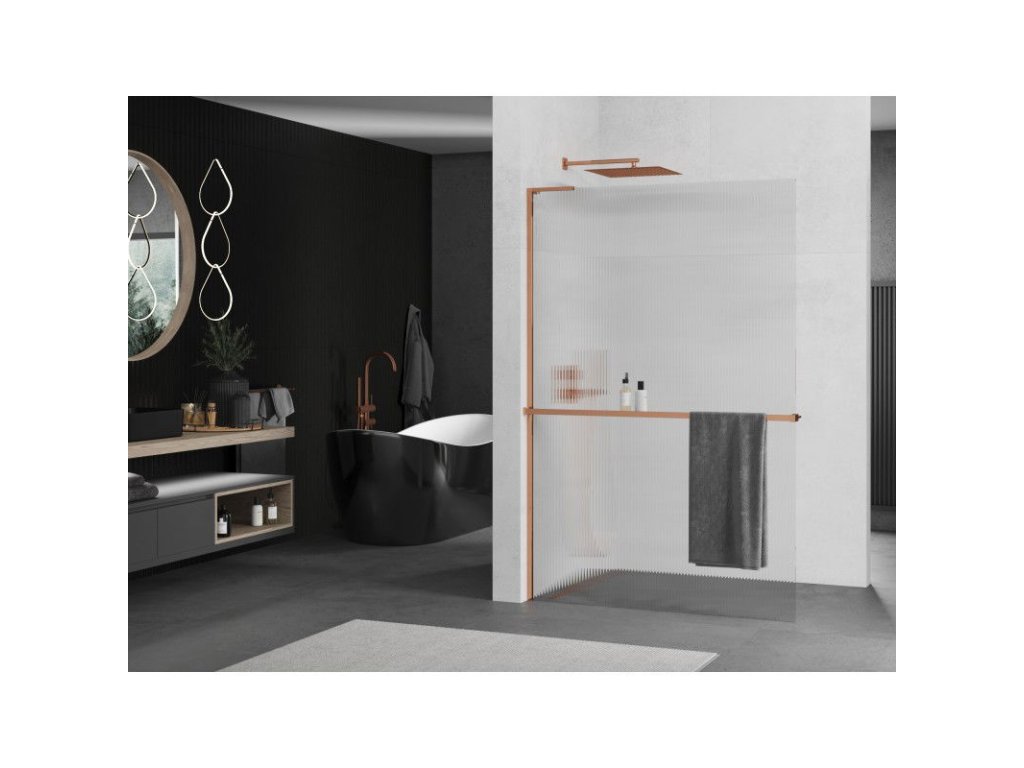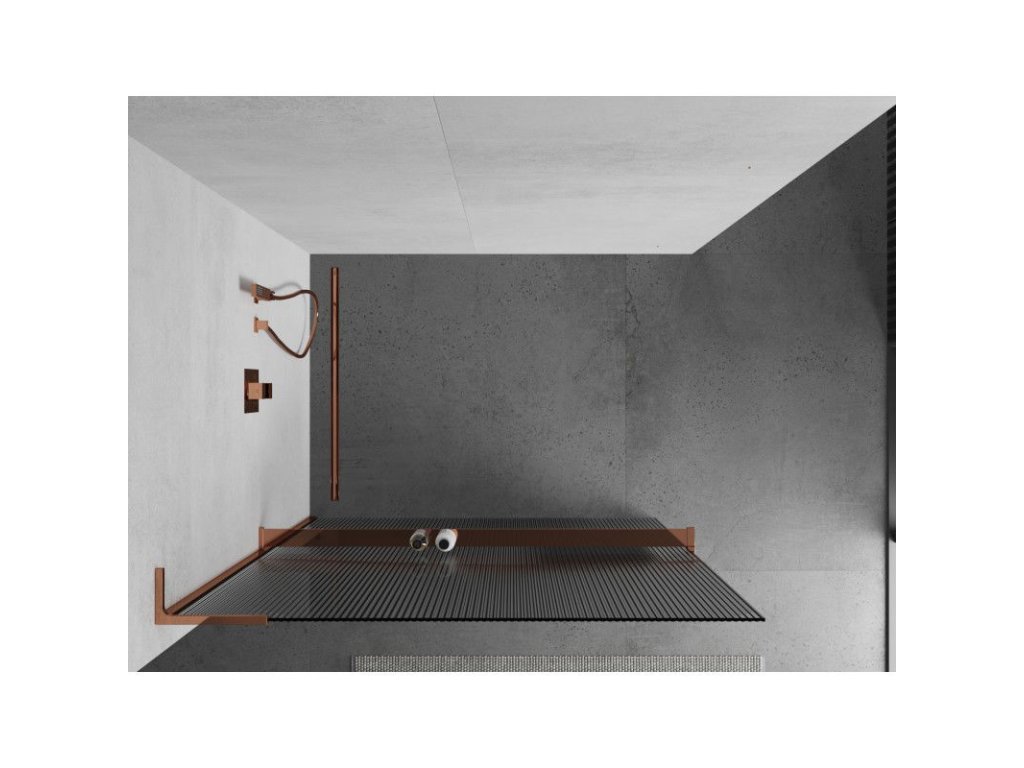 Mexen Kyoto+ L sprchová stena s policou 100 x 200 cm, pruhovaná, ružovo zlatá - 800-100-123-60-09