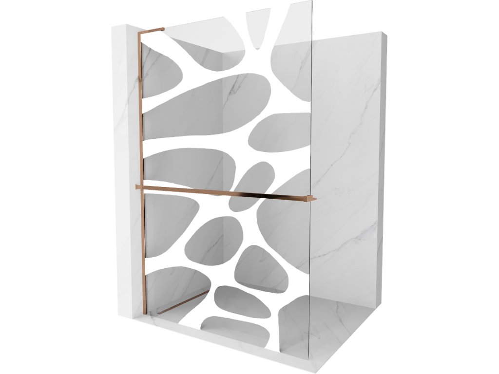 Mexen Kyoto+ L sprchová stena s policou 120 x 200 cm, biely vzor, ružové zlato - 800-120-123-60-97
