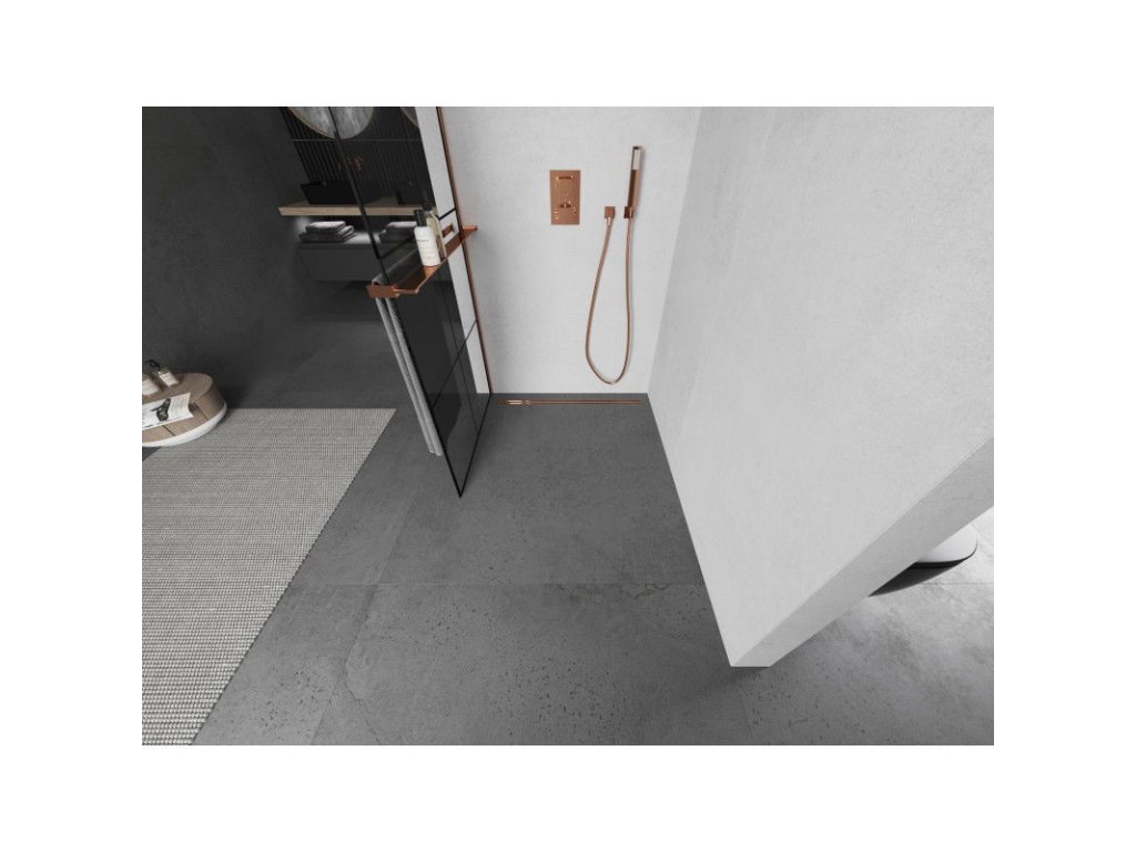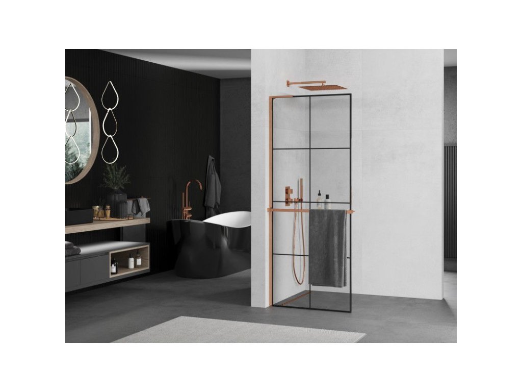 Mexen Kyoto+ L sprchová stena s policou 70 x 200 cm, čierny vzor, ružové zlato - 800-070-123-60-77