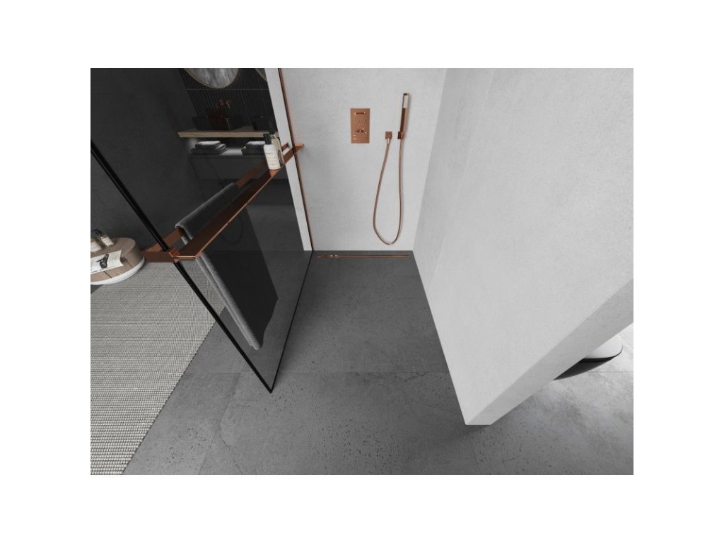 Mexen Kyoto+ L sprchová stena s policou 90 x 200 cm, čierny vzor, ružové zlato - 800-090-123-60-70