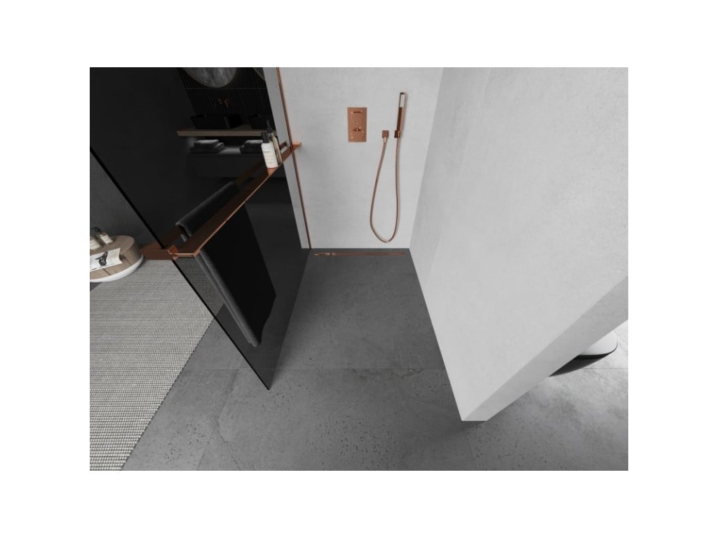 Mexen Kyoto+ L sprchová stena s policou 90 x 200 cm, grafit, ružové zlato - 800-090-123-60-40
