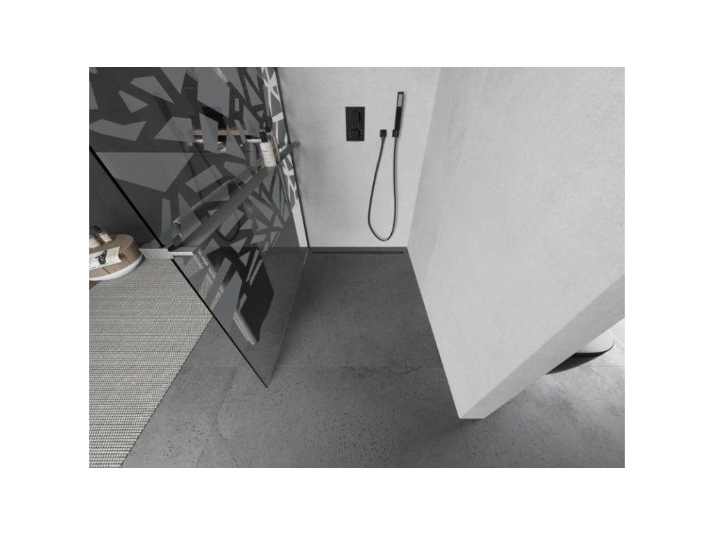 Mexen Kyoto+ sprchová stena s policou 100 x 200 cm, biely vzor, pištoľovo sivá kartáčovaná - 800-100-121-66-85