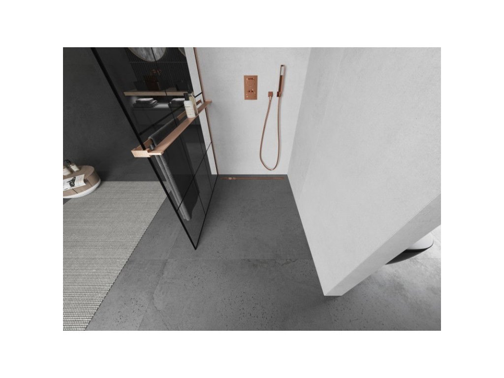Mexen Kyoto+ sprchová stena s policou 100 x 200 cm, čierny vzor, brúsená meď - 800-100-121-65-77