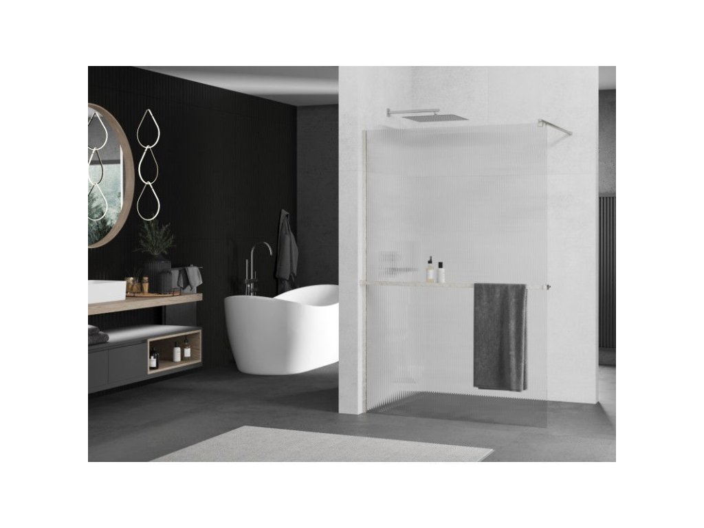 Mexen Kyoto+ sprchová stena s policou 100 x 200 cm, pruh, brúsený nikel - 800-100-121-97-09