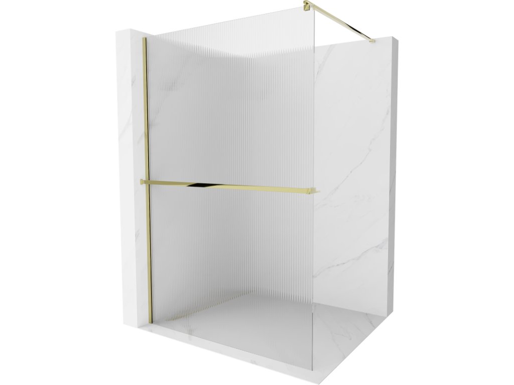 Mexen Kyoto+ sprchová stena s policou 100 x 200 cm, pruhovaná, zlatá - 800-100-121-50-09