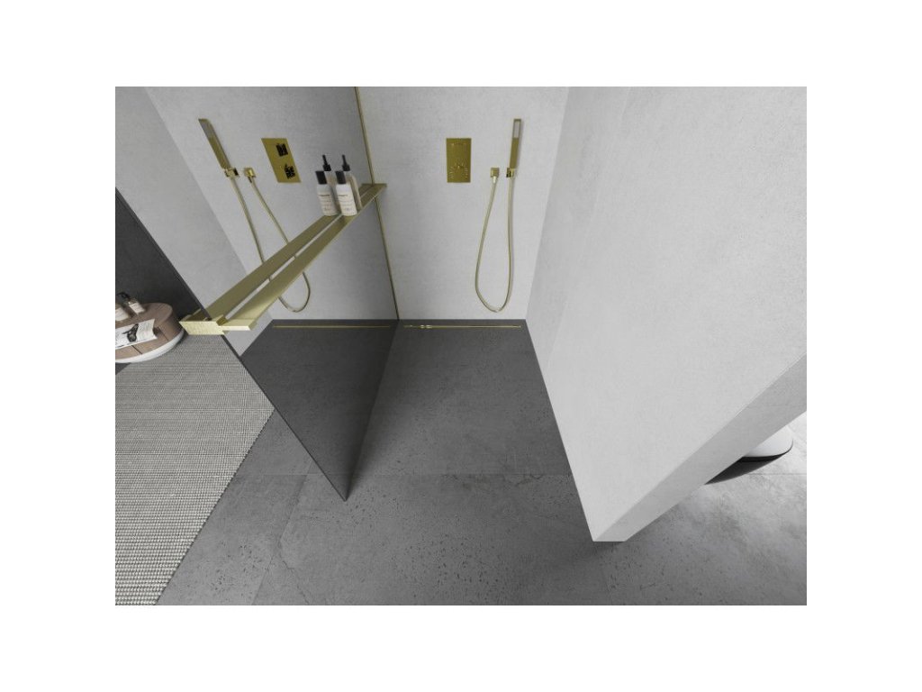 Mexen Kyoto+ sprchová stena s policou 100 x 200 cm, zrkadlo, brúsené zlato - 800-100-121-55-50