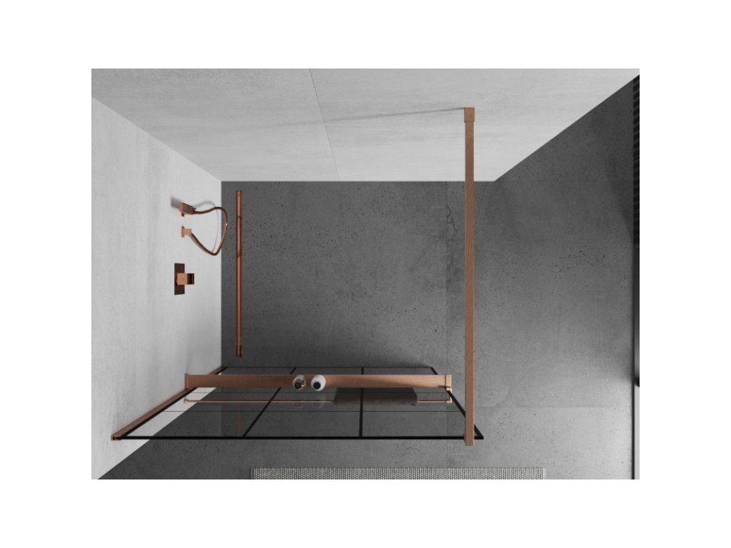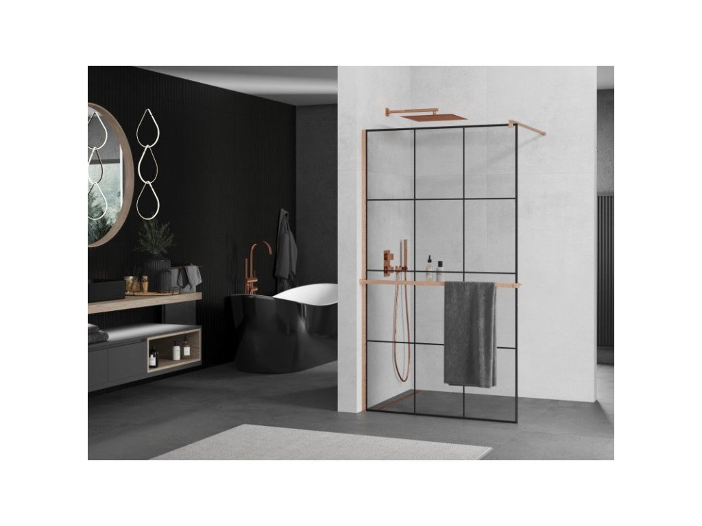 Mexen Kyoto+ sprchová stena s policou 110 x 200 cm, čierny dizajn, brúsená meď - 800-110-121-65-77