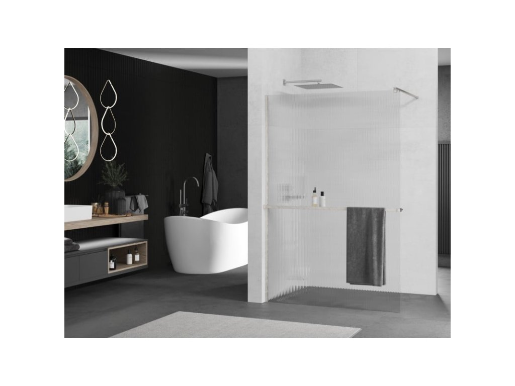 Mexen Kyoto+ sprchová stena s policou 110 x 200 cm, pruh, brúsený nikel - 800-110-121-97-09