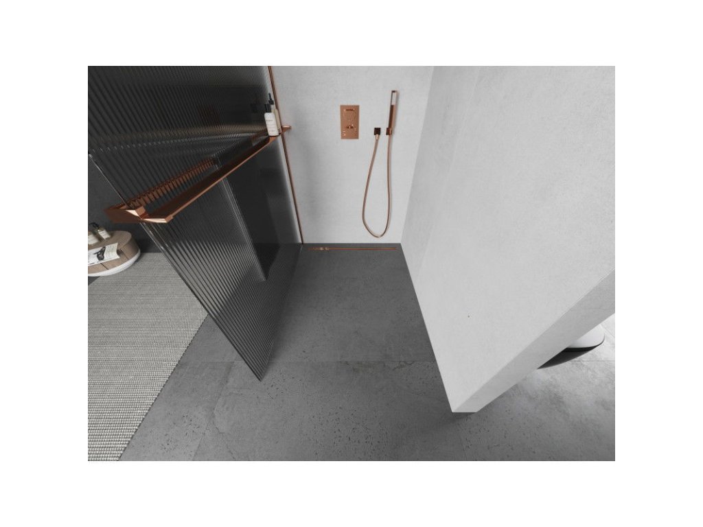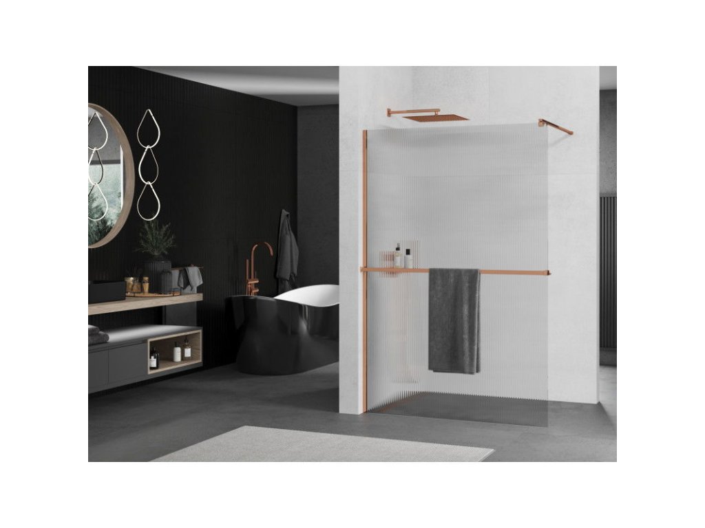 Mexen Kyoto+ sprchová stena s policou 110 x 200 cm, pruhovaná, ružovo zlatá - 800-110-121-60-09