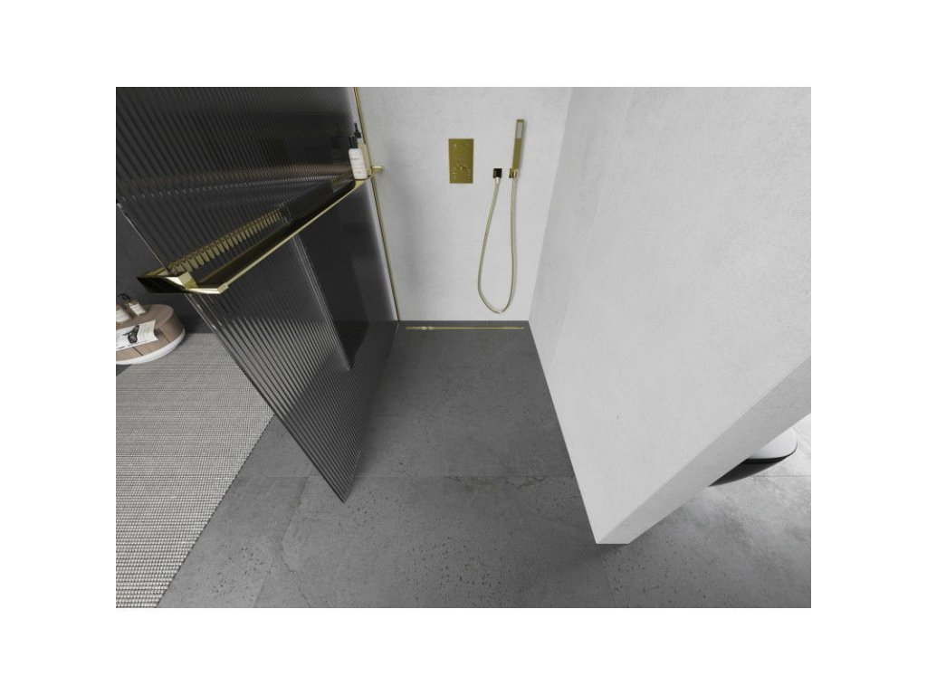 Mexen Kyoto+ sprchová stena s policou 110 x 200 cm, pruhovaná, zlatá - 800-110-121-50-09