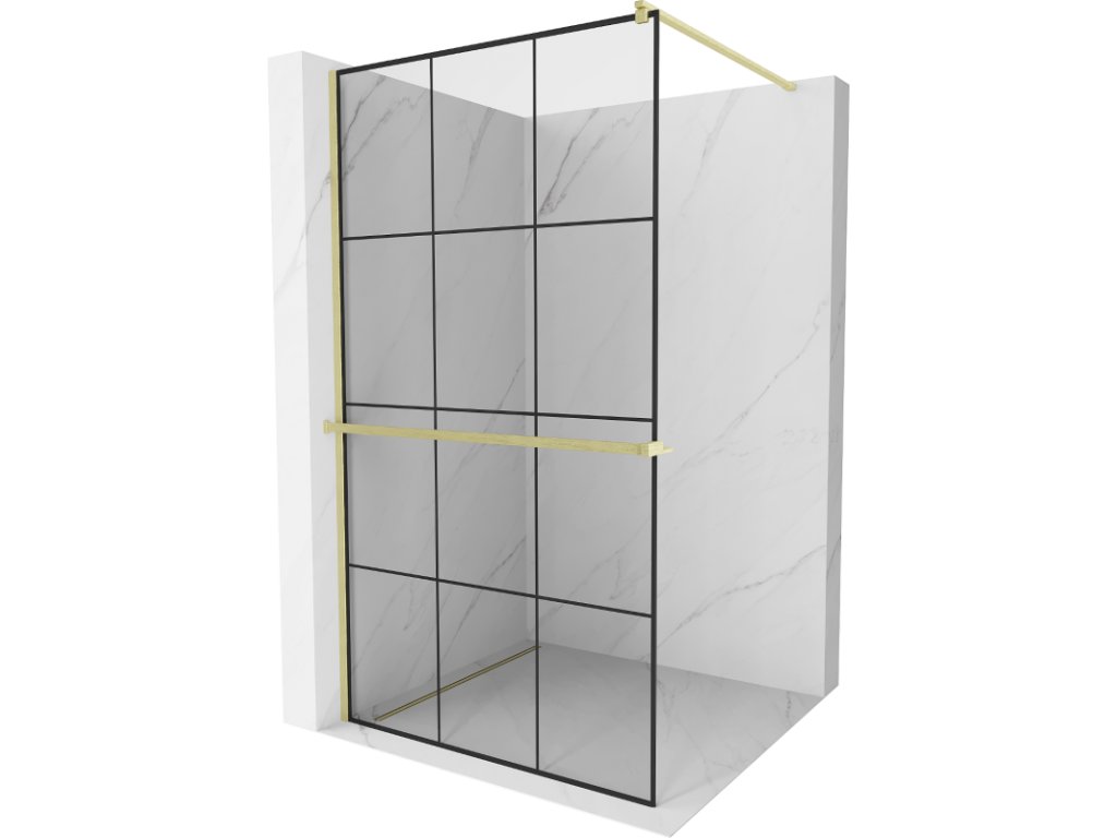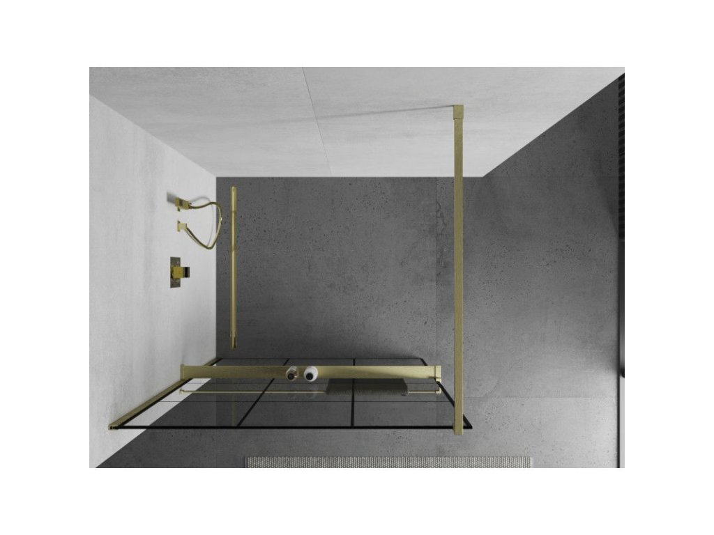 Mexen Kyoto+ sprchová stena s policou 120 x 200 cm, čierny vzor, zlatý kartáč - 800-120-121-55-77
