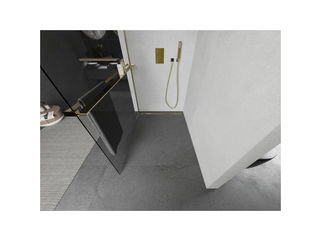Mexen Kyoto+ sprchová stena s policou 125 x 200 cm, transparentná, zlatá - 800-125-121-50-00
