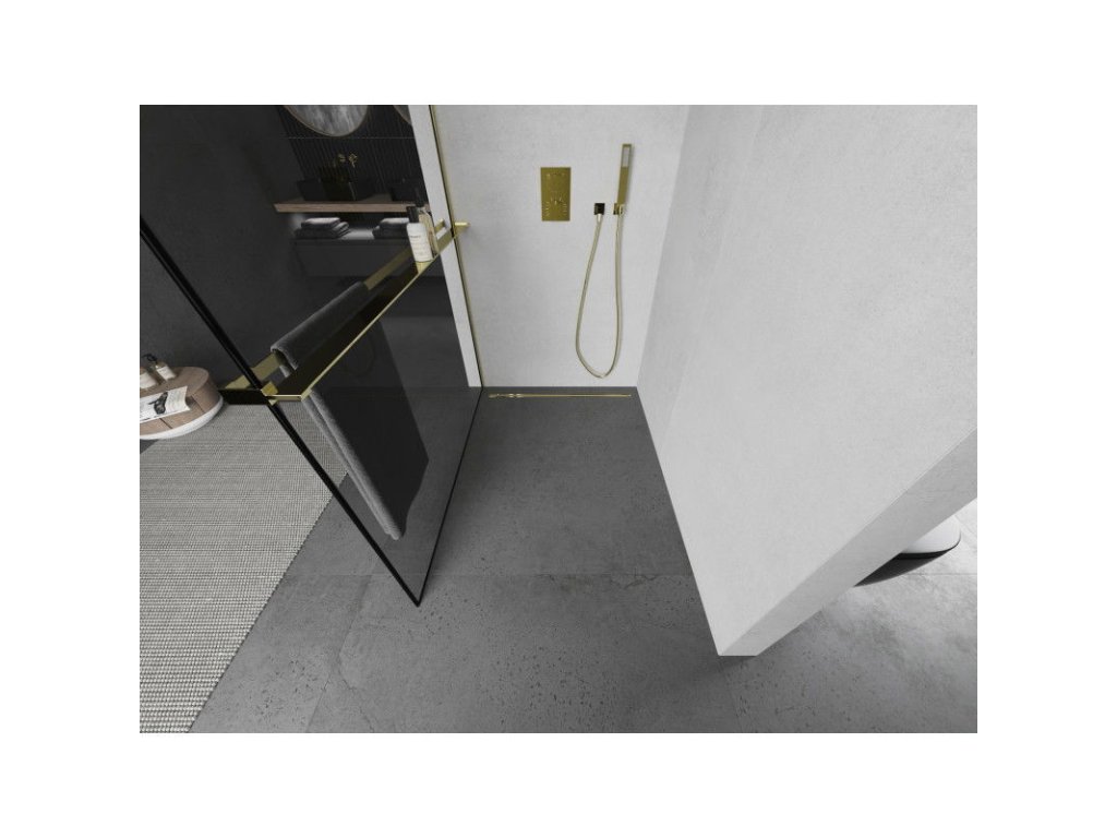 Mexen Kyoto+ sprchová stena s policou 130 x 200 cm, čierny vzor, zlatá - 800-130-121-50-70