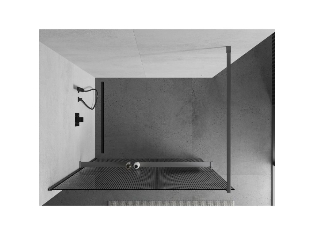 Mexen Kyoto+ sprchová stena s policou 130 x 200 cm, pruh, pištoľový kov - 800-130-121-95-09