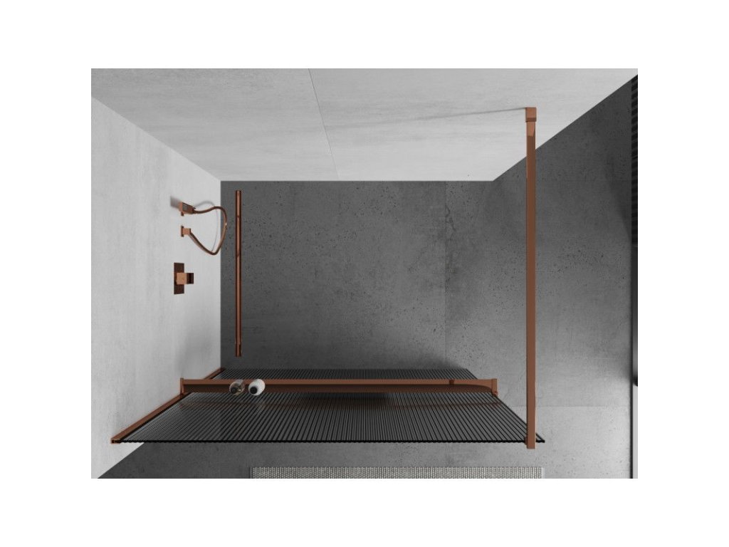 Mexen Kyoto+ sprchová stena s policou 130 x 200 cm, pruhovaná, ružovo zlatá - 800-130-121-60-09