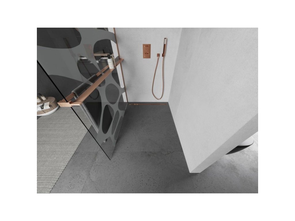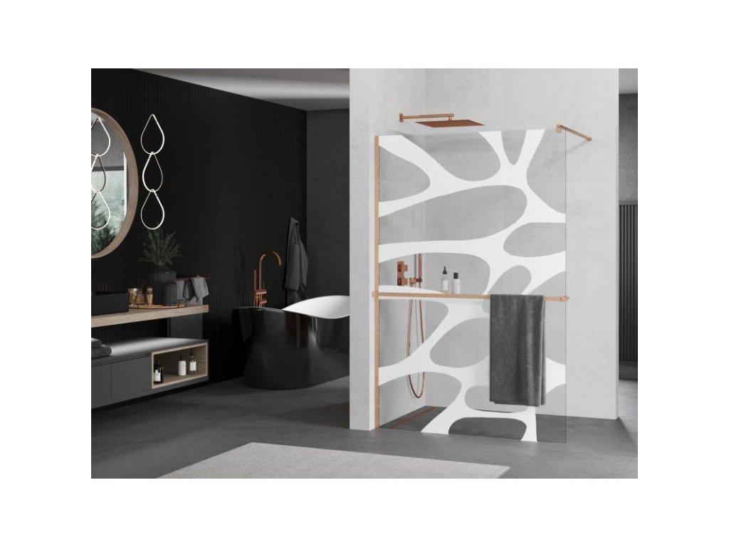 Mexen Kyoto+ sprchová stena s policou 140 x 200 cm, biele prevedenie, brúsená meď - 800-140-121-65-97