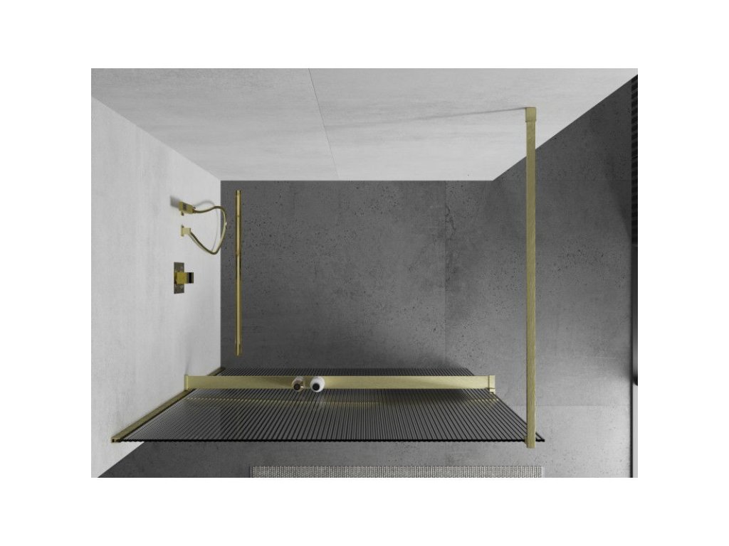 Mexen Kyoto+ sprchová stena s policou 140 x 200 cm, pruhovaná, brúsené zlato - 800-140-121-55-09