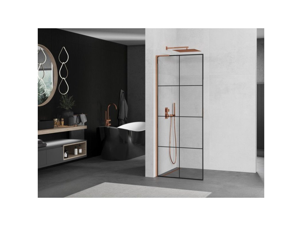 Mexen Kyoto L sprchová stena 90 x 200 cm, čierny vzor, ružové zlato - 800-090-103-60-77