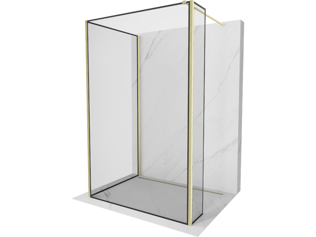 Mexen Kyoto sprchová stena 100 x 70 x 30 cm, čierny vzor, zlatý kartáč - 800-100-070-221-55-70-030