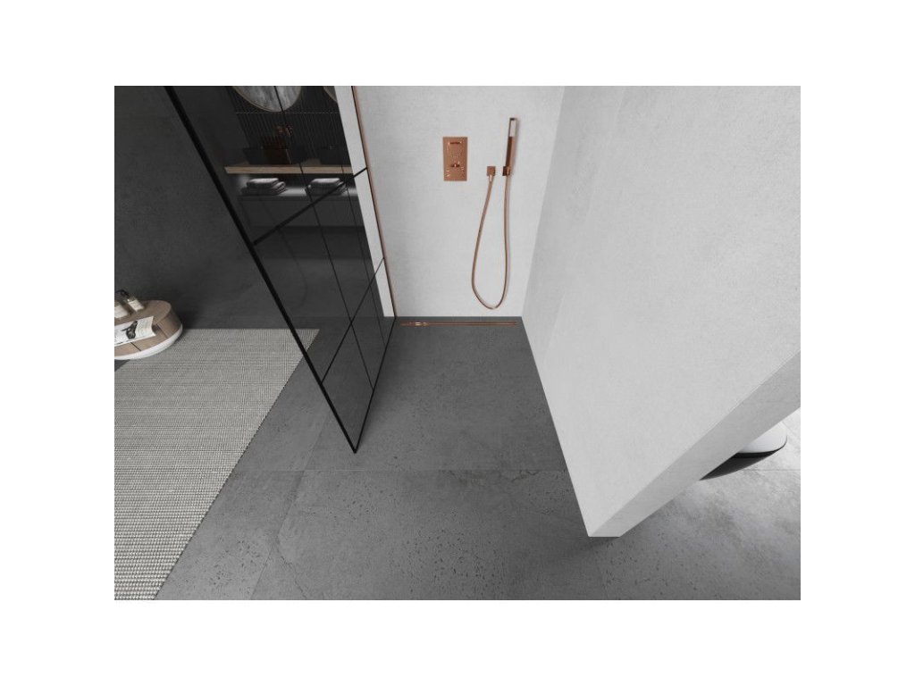 Mexen Kyoto sprchová stena 120 x 200 cm, 8 mm čierny vzor, brúsená meď - 800-120-101-65-77