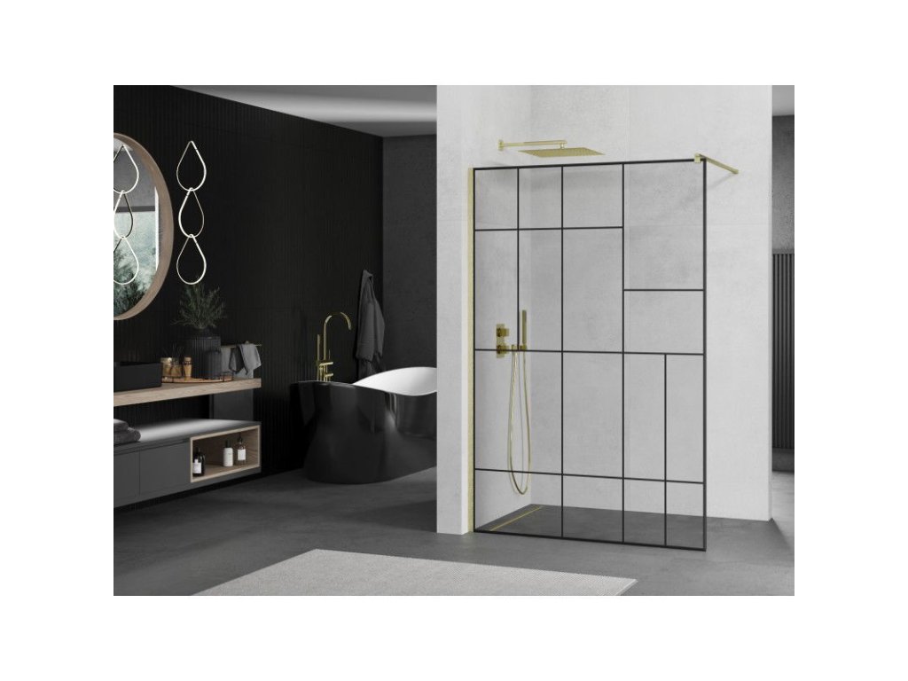 Mexen Kyoto sprchová stena 120 x 200 cm, 8 mm čierny vzor, zlatý kartáč - 800-120-101-55-78