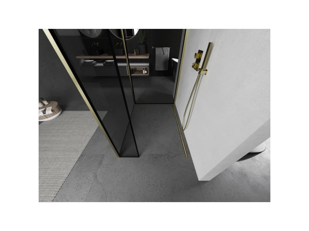 Mexen Kyoto sprchová stena 120 x 90 x 40 cm, čierny vzor, zlatý kartáč - 800-120-090-221-55-70-040