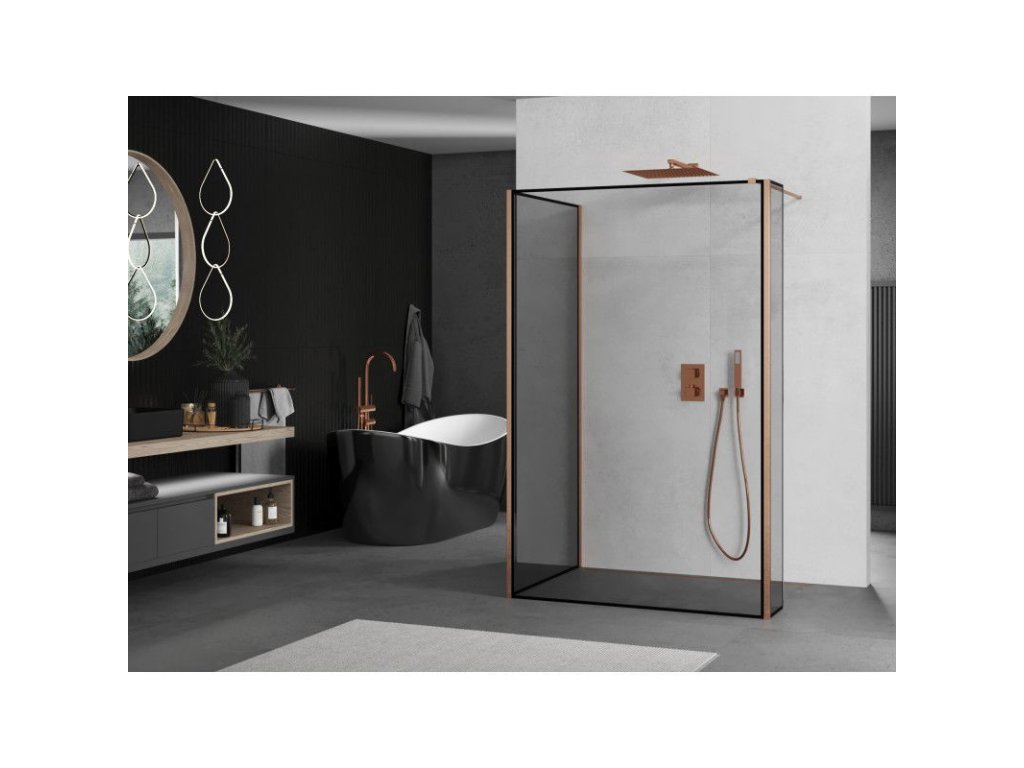 Mexen Kyoto sprchová stena 130 x 110 x 30 cm, čierny vzor, brúsená meď - 800-130-110-221-65-70-030