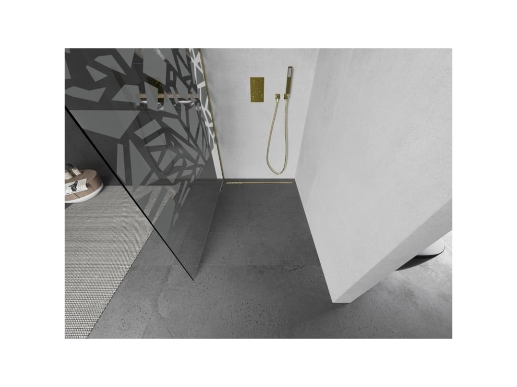 Mexen Kyoto sprchová stena 140 x 200 cm, biela 8 mm vzor, zlatý kartáč - 800-140-101-55-85