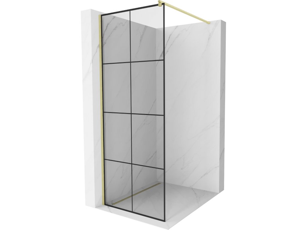 Mexen Kyoto sprchová stena 80 x 200 cm, 8 mm čierny vzor, zlatý kartáč - 800-080-101-55-77
