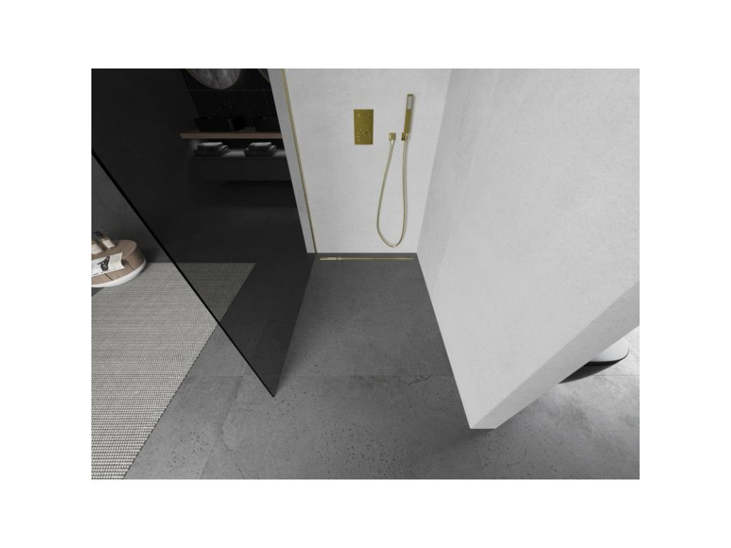 Mexen Kyoto sprchová stena 80 x 200 cm, grafit 8 mm, zlatý kartáč - 800-080-101-55-40