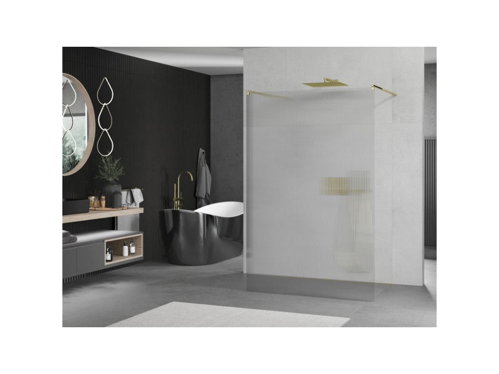 Mexen Kyoto voľne stojaca sprchová stena 100 x 200 cm, 8 mm pásy, zlatá - 800-100-002-50-09