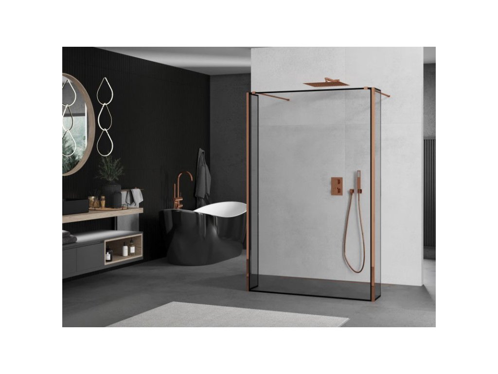 Mexen Kyoto voľne stojaca sprchová stena 110 x 30 x 30 cm, čierny vzor, ružové zlato - 800-110-030-222-60-70-030