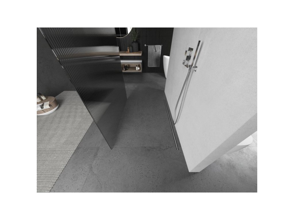Mexen Kyoto voľne stojaca sprchová stena 130 x 200 cm, 8 mm pásy, brúsený nikel - 800-130-002-97-09