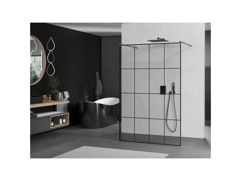 Mexen Kyoto voľne stojaca sprchová stena 140 x 200 cm, 8 mm čierny vzor, pištoľovo sivá kartáčovaná - 800-140-002-66-77