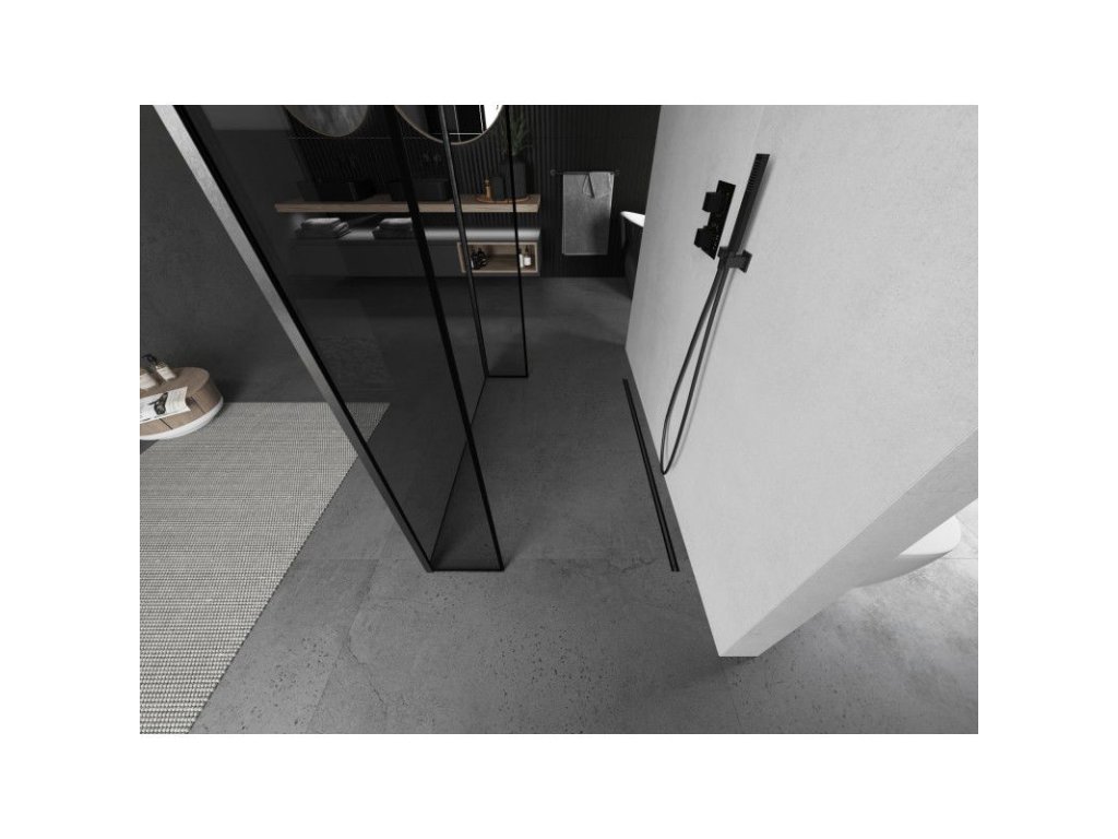 Mexen Kyoto voľne stojaca sprchová stena 140 x 30 x 30 cm, čierny vzor, pištoľovo sivá kartáčovaná - 800-140-030-222-66-70-030