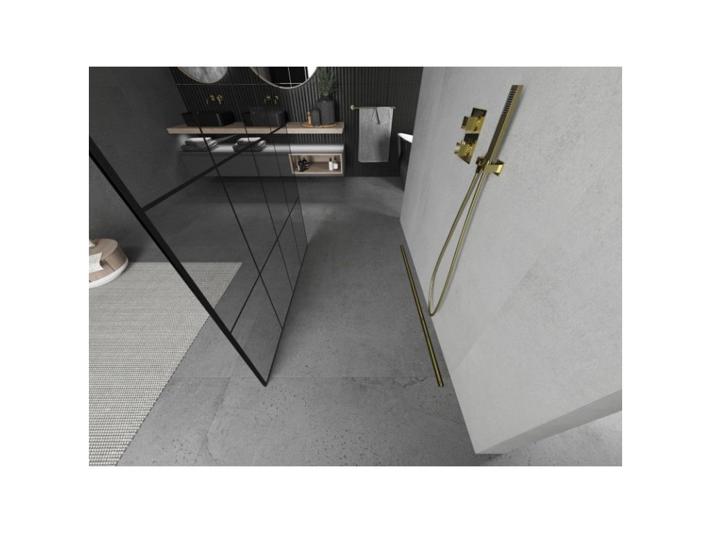 Mexen Kyoto voľne stojaca sprchová stena 150 x 200 cm, čierna 8 mm vzor, zlatá - 800-150-002-50-77