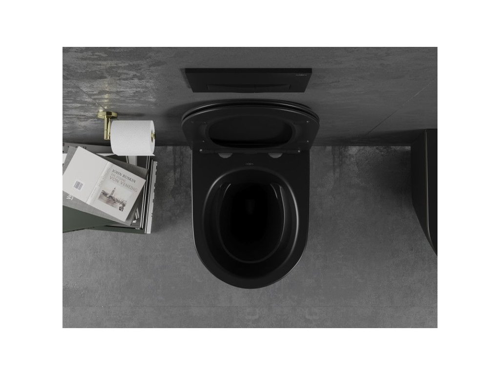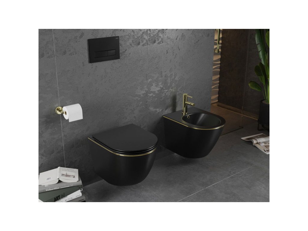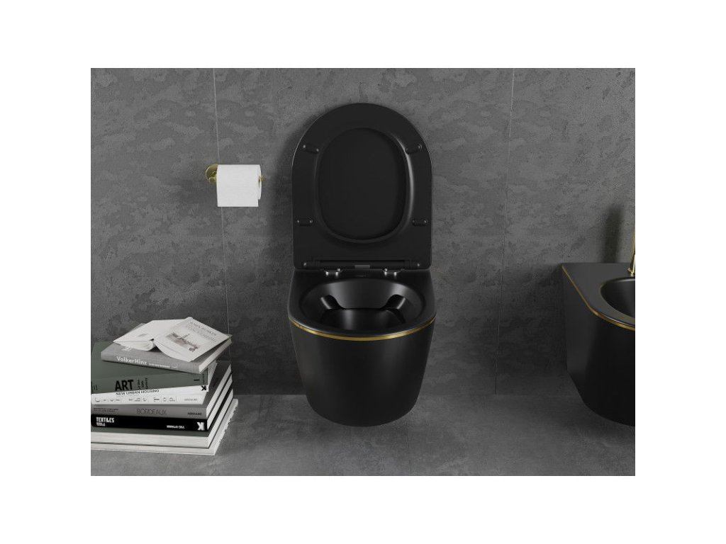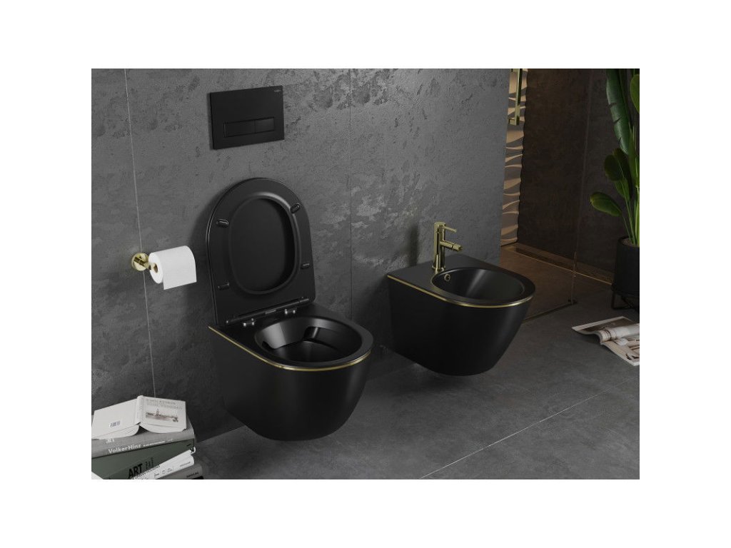 Mexen Lena WC misa bez okrajov s voľne plávajúcim štíhlym sedadlom, duroplast, čierny mat/zlatá linka - 30224075
