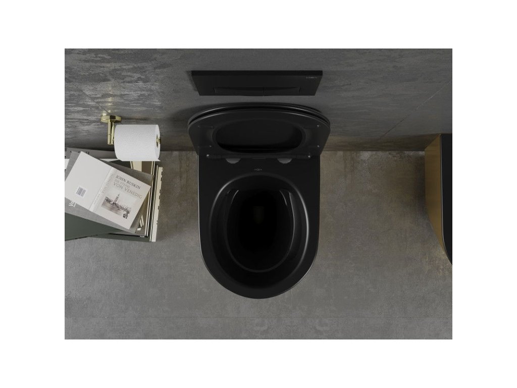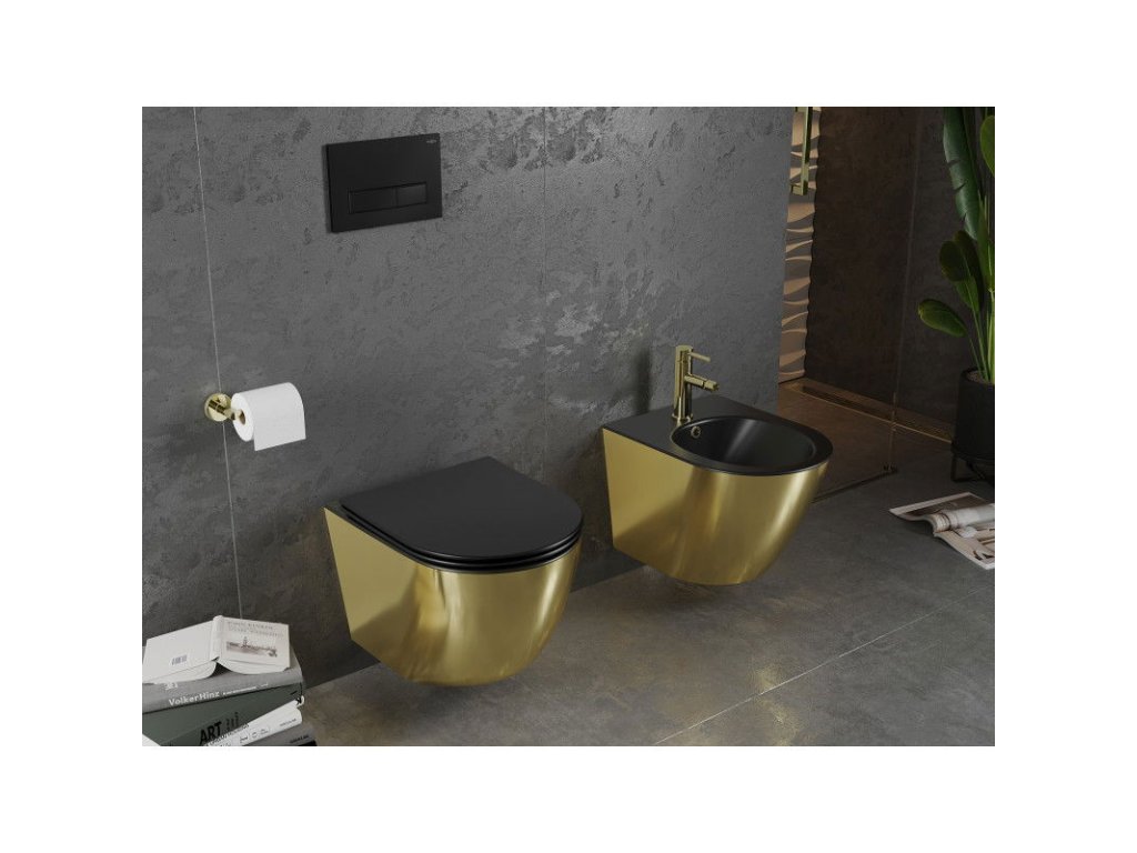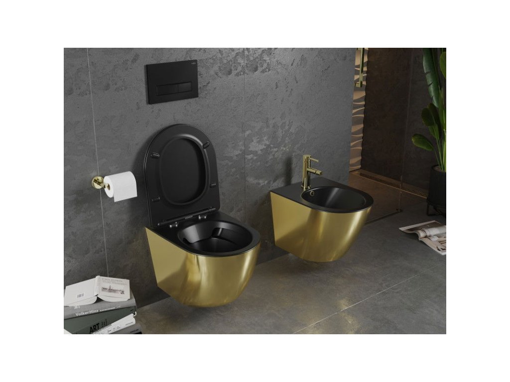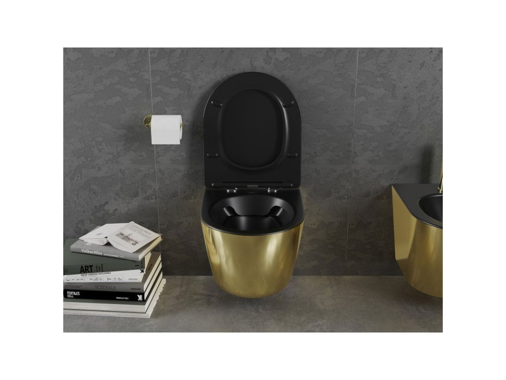 Mexen Lena WC misa bez okrajov s voľne plávajúcim štíhlym sedadlom, duroplast, čierny mat/zlato - 30224076