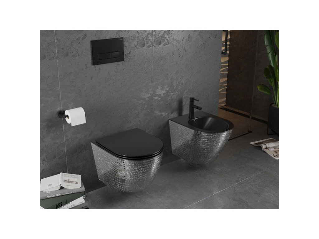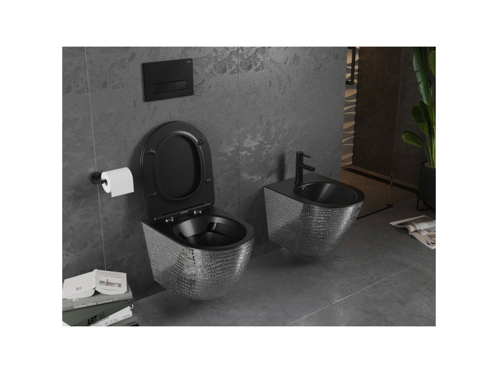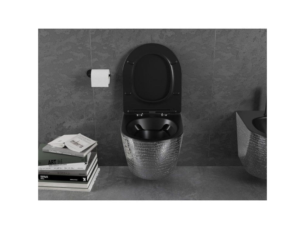 Mexen Lena WC misa bez okrajov s voľne plávajúcim štíhlym sedadlom, duroplast, vzor čierny mat/strieborná škála - 30224072