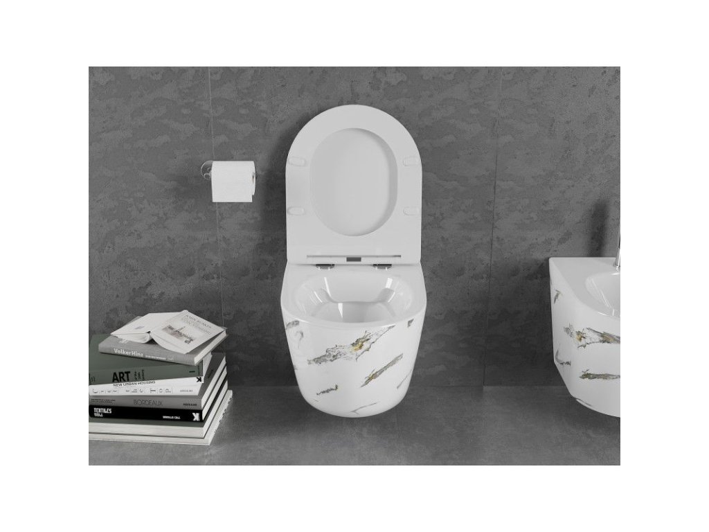 Mexen Lena WC misa bez okrajov so štíhlym voľne stojacim sedadlom, duroplast, biely kameň - 30224091