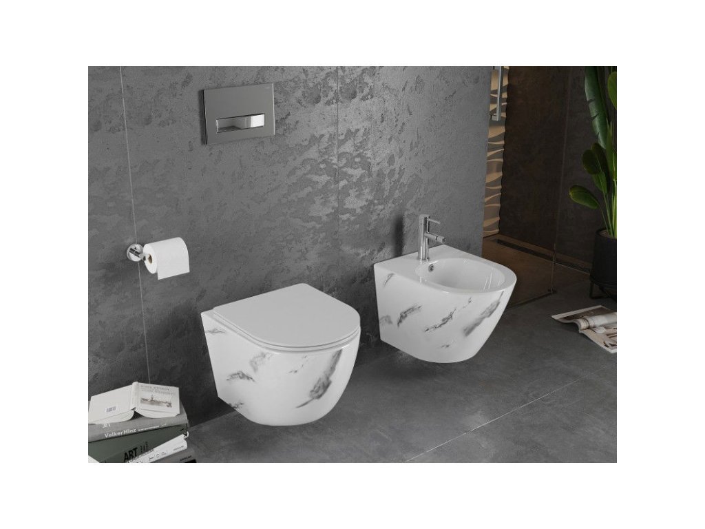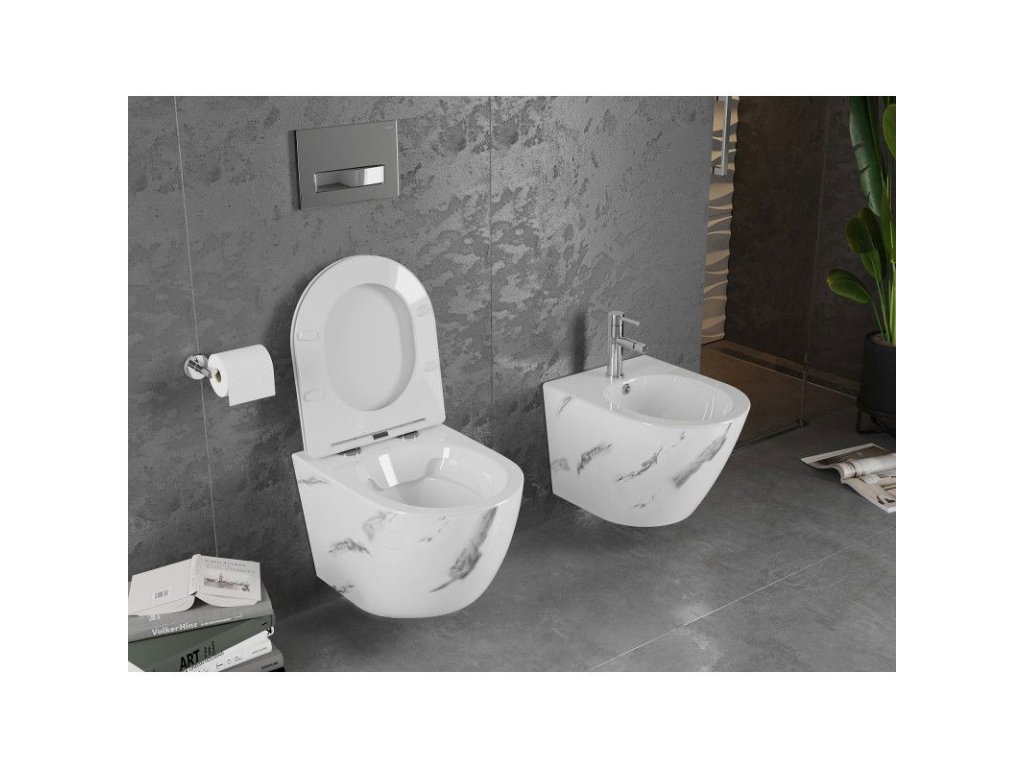 Mexen Lena WC misa bez okrajov so štíhlym voľne stojacim sedadlom, duroplast, biely kameň - 30224092
