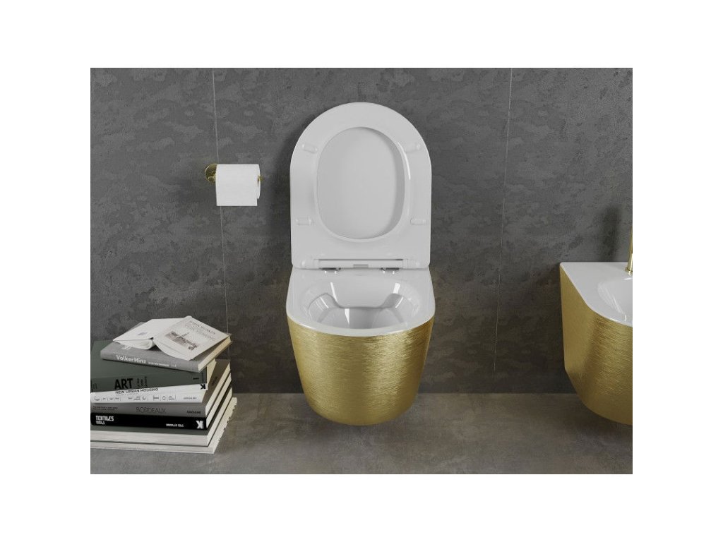 Mexen Lena WC misa bez okrajov so štíhlym voľne stojacim sedadlom, duroplast, vzor biela/zlatá linka - 30224007