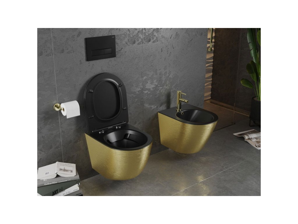 Mexen Lena WC misa bez okrajov so štíhlym voľne stojacim sedadlom, duroplast, vzor čierny mat/zlatá linka - 30224077