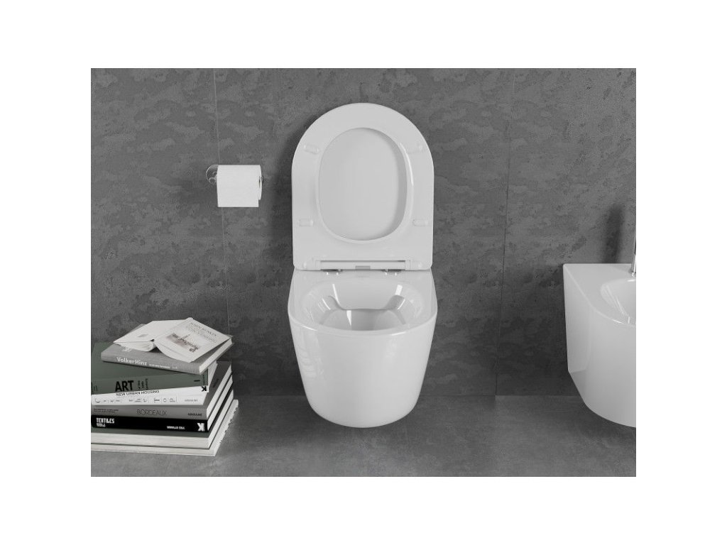 Mexen Lena závesný WC záchod, splachovanie Rimless, s doskou duroplast pomaly padajúcou SLIM, biela - 30220400