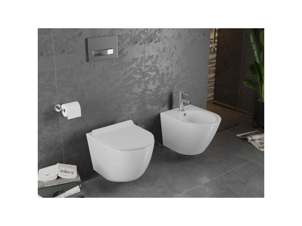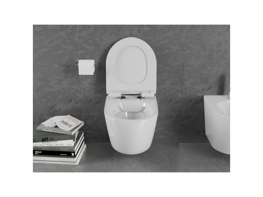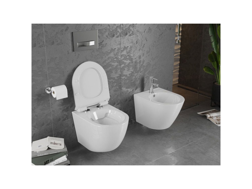 Mexen Lena závesný WC záchod, splachovanie Rimless, s doskou duroplast pomaly padajúcou SLIM, biela - 30224000